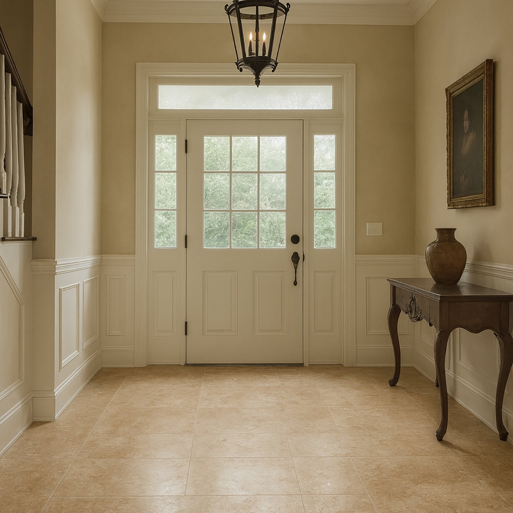 Enhance your living spaces with the sophisticated appeal of our Philadelphia Honed and Filled 18x18 Travertine Tile. Designed for both indoor and outdoor use, it combines elegance with durability. The smooth finish highlights the stone’s natural beauty, adding timeless charm to floors and walls. Whether updating a living room, kitchen, or patio, this versatile tile offers a refined, lasting aesthetic that seamlessly blends with classic and modern designs.