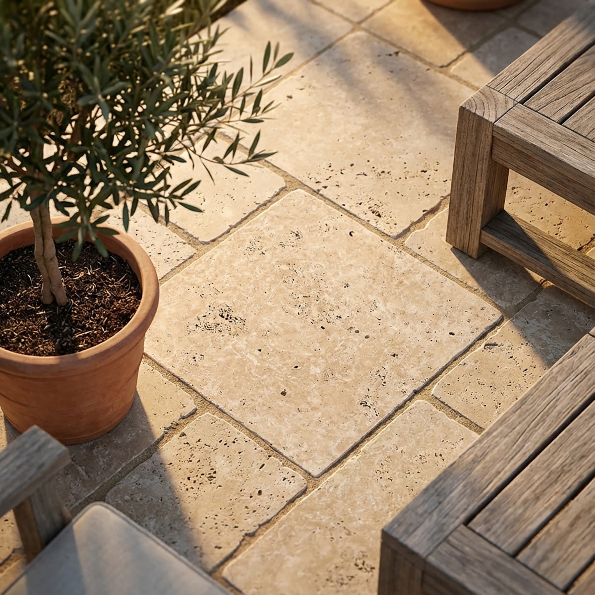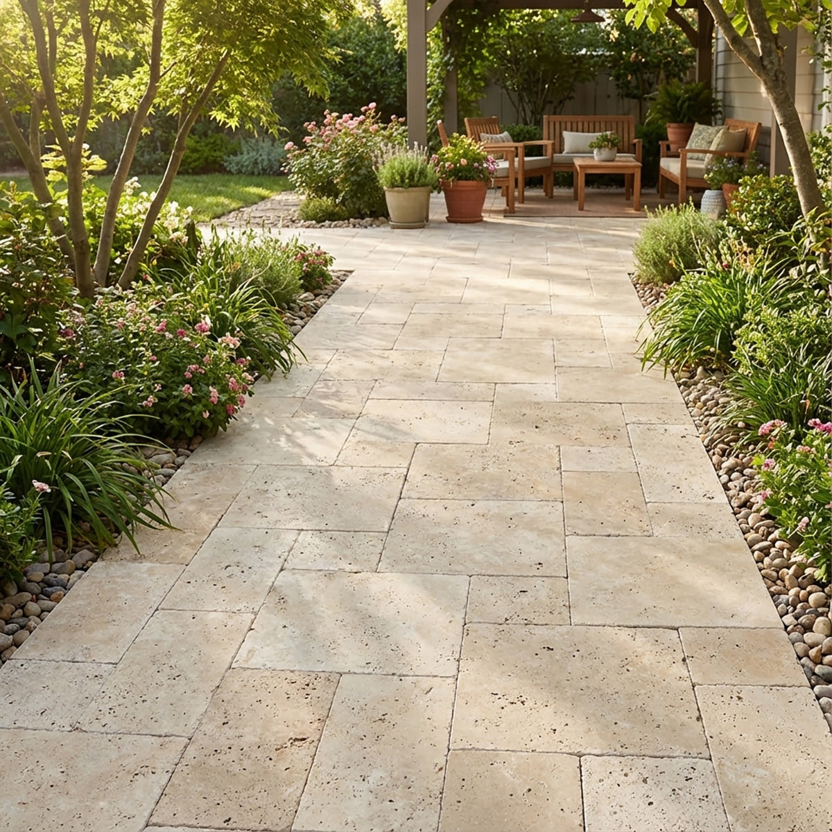 Enhance your outdoor spaces with the timeless appeal of Ivory Tumbled 16x16 Travertine Pavers, crafted to deliver both durability and natural elegance. The tumbled finish creates a softly aged texture that improves slip resistance while adding character to exterior surfaces. With a balanced 16x16 format, these pavers offer versatile layout options for patios, walkways, pool decks, and garden paths. Warm ivory tones and subtle natural variation blend seamlessly with landscapes and architectural elements, making these pavers a reliable choice for residential and commercial outdoor environments seeking long-lasting beauty and performance.